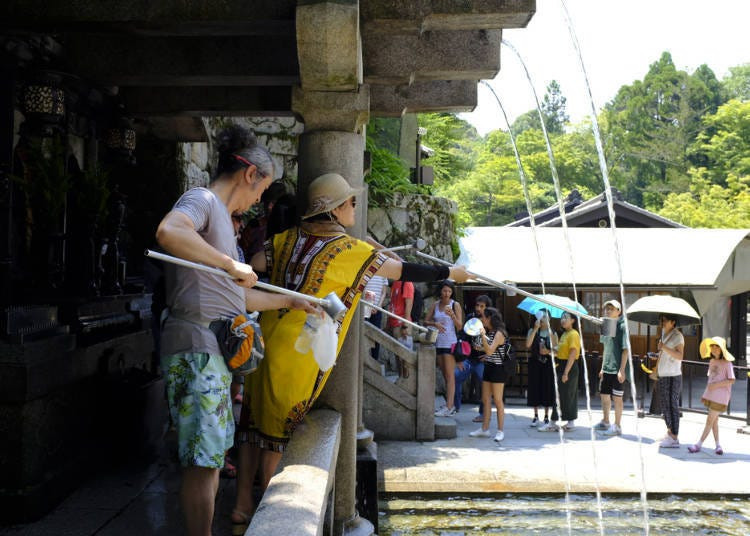 지혜, 사랑, 장수에 효험이 있다는 오토와 폭포에 줄 서 있는 인파.
